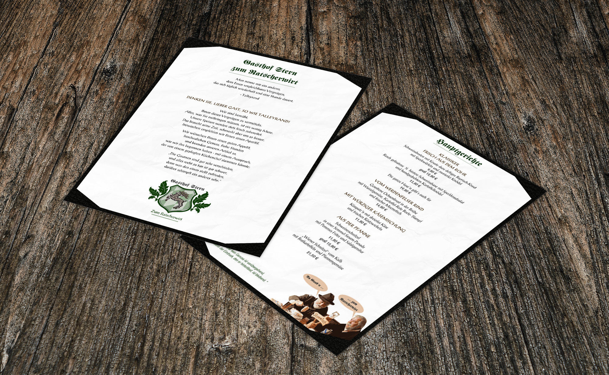PrintDesign – Speisekarte Gasthof Stern – zum Ratscherwirt